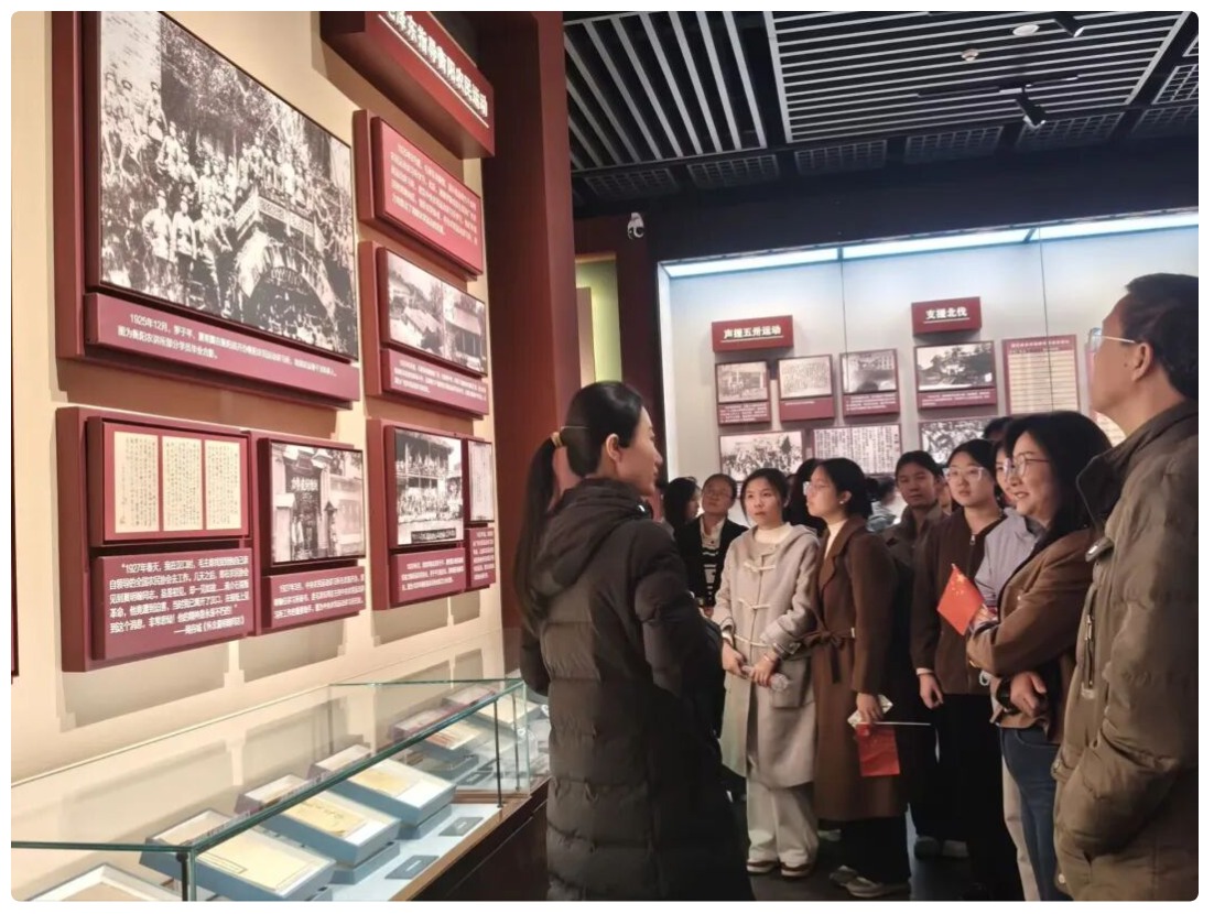 活动伊始,全体人员步入纪念馆。循着讲解员的引导与生动讲述,大家仔细观看展厅内陈列的历史文献、珍贵照片与实物展品,凝神聆听革命先辈们为追求真理、救国图强而发起学生运动的峥嵘往事。一段段生动的文字记载、一幅幅厚重的历史影像,将那个风雨如晦年代里青年学子们的热血与担当清晰地呈现在眼前。党员们不时驻足交流,深刻感悟着湘南学联作为湘南地区革命策源地所承载的红色精神与时代价值。