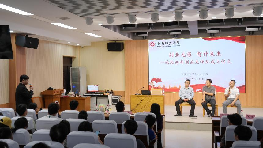为深入贯彻省委、省政府关于支持大学生创新创业“七个一”行动的决策部署,完善创新人才自主培养体系,激发大学生创新创业热情,4月18日下午,衡阳师范学院计算机科学与技术学院党总支组建大学生鸿雁创新创业先锋队,并聘任蒋海炳、刘浩、王彬三位企业家担任先锋队的校外创业指导老师。我院党总支书记何志红、副书记魏文生、副院长焦铬、学院创业导师以及鸿雁创新创业先锋队队员共计120余人参加了此次活动。