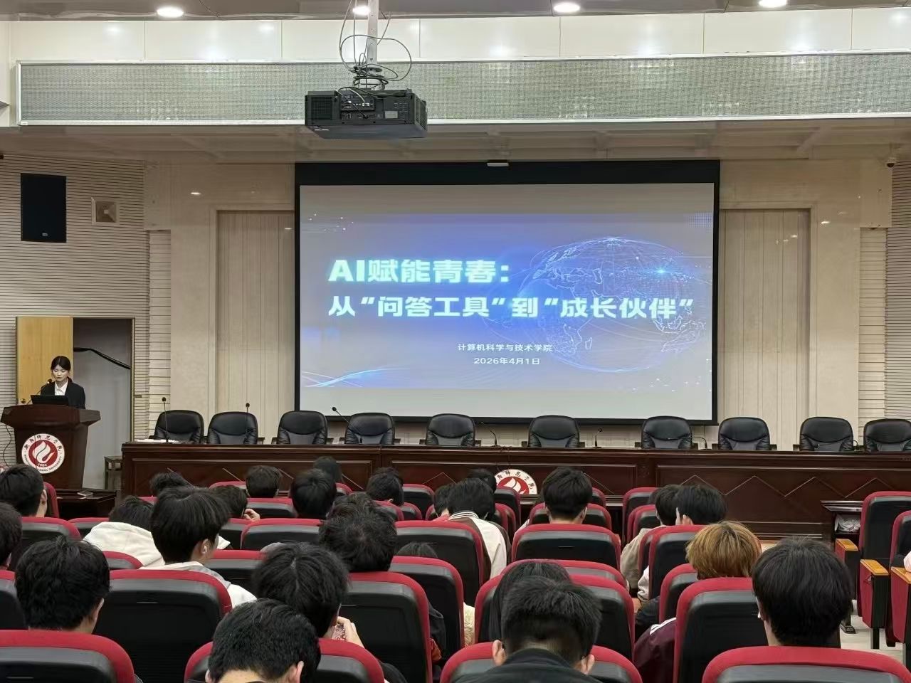 为引导青年学子在学以致用中践行奉献、互助的时代精神,2026年4月1日晚,衡阳师范学院计算机科学与技术学院于外语楼北311报告厅成功举办“AI赋能青春:从‘问答工具’到‘成长伙伴’”人工智能主题宣讲会。百余师生齐聚现场,共赴一场科技与志愿精神交融、AI赋能学雷锋的成长之约。