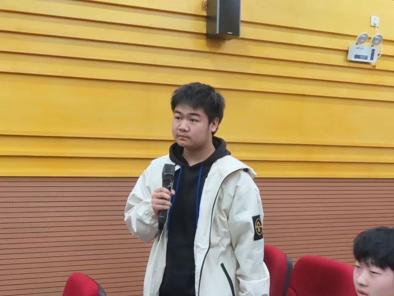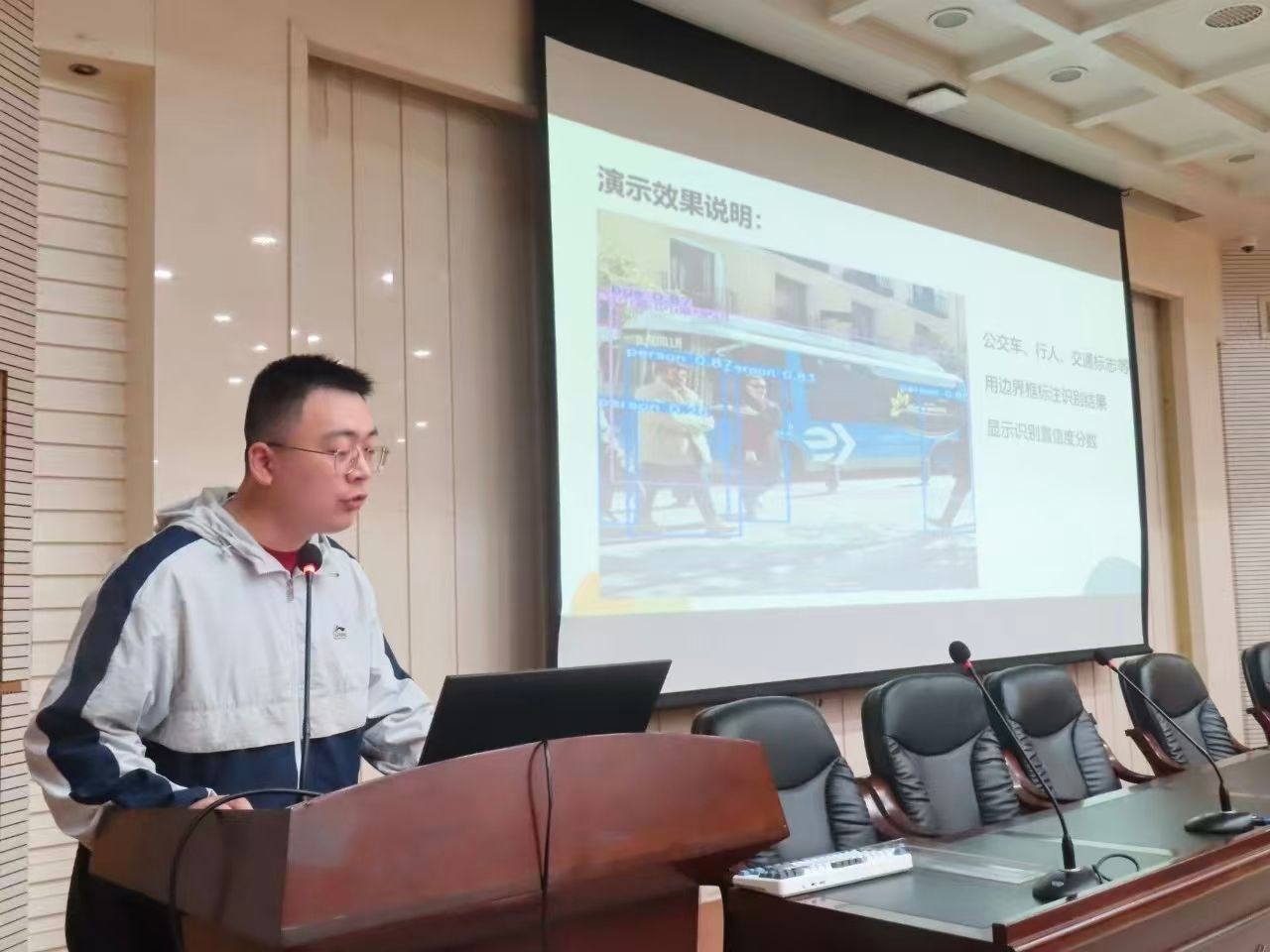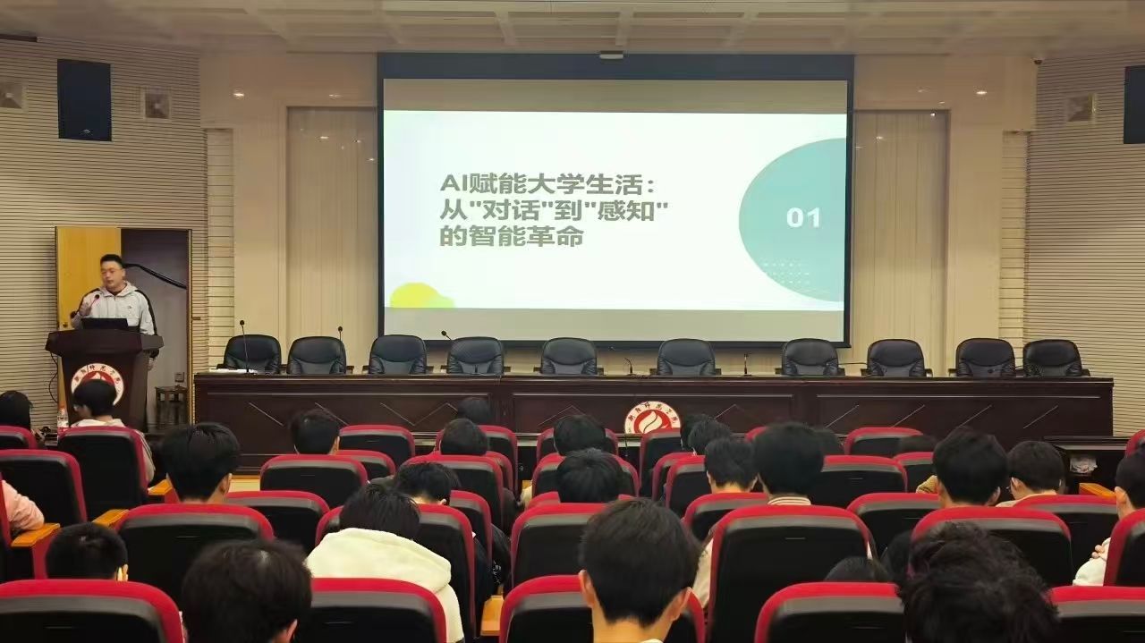 活动伊始,肖峙力同学以“AI赋能大学生活:从‘对话’到‘感知’的智能革命”为主题展开讲解。他从AI技术发展脉络切入,对比传统文本AI与感知智能的核心差异,重点讲解YOLOv8智能感知技术的工作原理、应用优势与落地场景,并结合智慧校园、课堂管理等真实案例,呈现人工智能为校园生活带来的高效与便捷。宣讲现场,他还进行了代码演示,清晰地展示技术应用效果,让同学们真切地感受到AI如何赋能学习、服务日常。互动提问环节中,大家围绕技术应用、使用规范等话题积极交流,进一步深化对人工智能价值的理解。